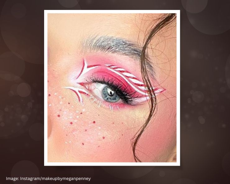 2. कैंडी लाइनर : क्रिसमस पर कैंडी डेकोरेशन बहुत प्रचलित होती है। इसलिए आप भी इस क्रिसमस इस तरह का मेकअप का सकते हैं। इस तरह के मेकअप के लिए आप किसी एक्सपर्ट की मदद ले सकते हैं। साथ ही यह मेकअप आपकी रेड, ब्लैक, शिमर या अन्य सादे रंग की ड्रेस के साथ काफी अच्छा लगेगा।
