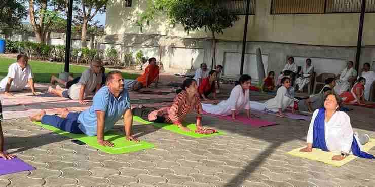 इस सत्र में रहवासी संघ के लगभग 40 महिला और पुरुष उपस्थित थे जिन्होंने प्राणायाम, ध्यान और विभिन्न योगासनों का अभ्यास भी किया। इस सत्र में भुजंगासन एवं धनुरासन से रीढ़ की हड्डी को सुदृढ़ करने के संबंध में विस्तार से चर्चा भी की गई।