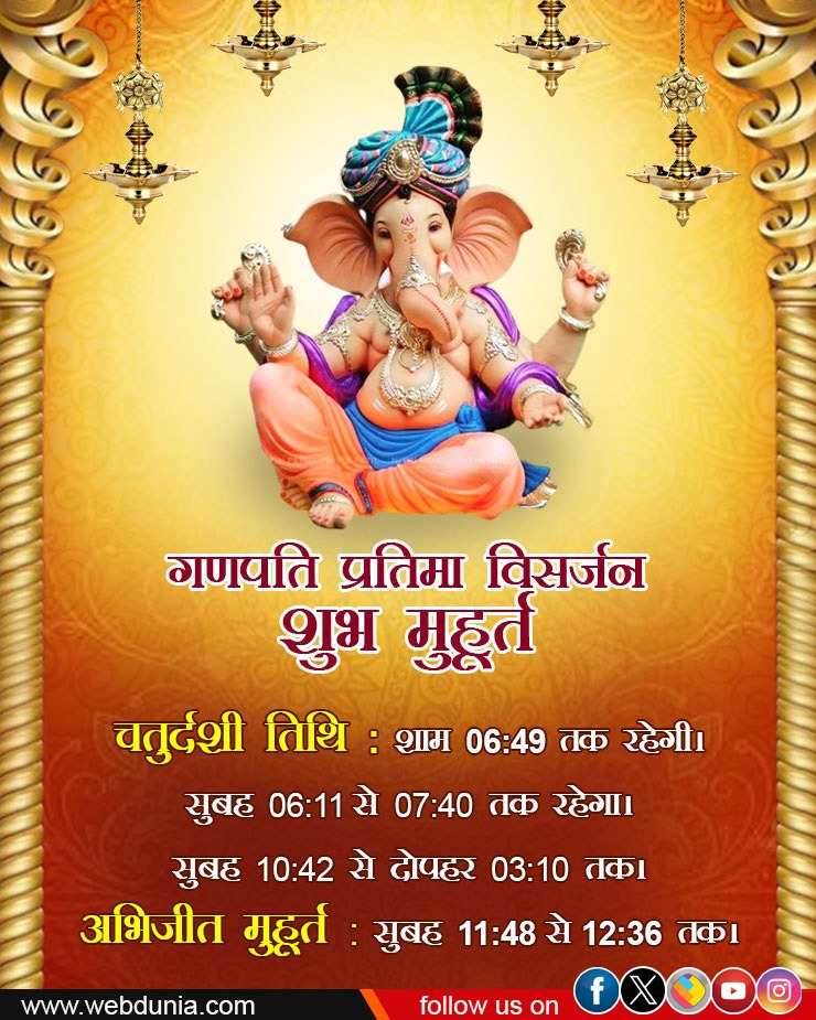 गणपति प्रतिमा विसर्जन का शुभ मुहूर्त:-