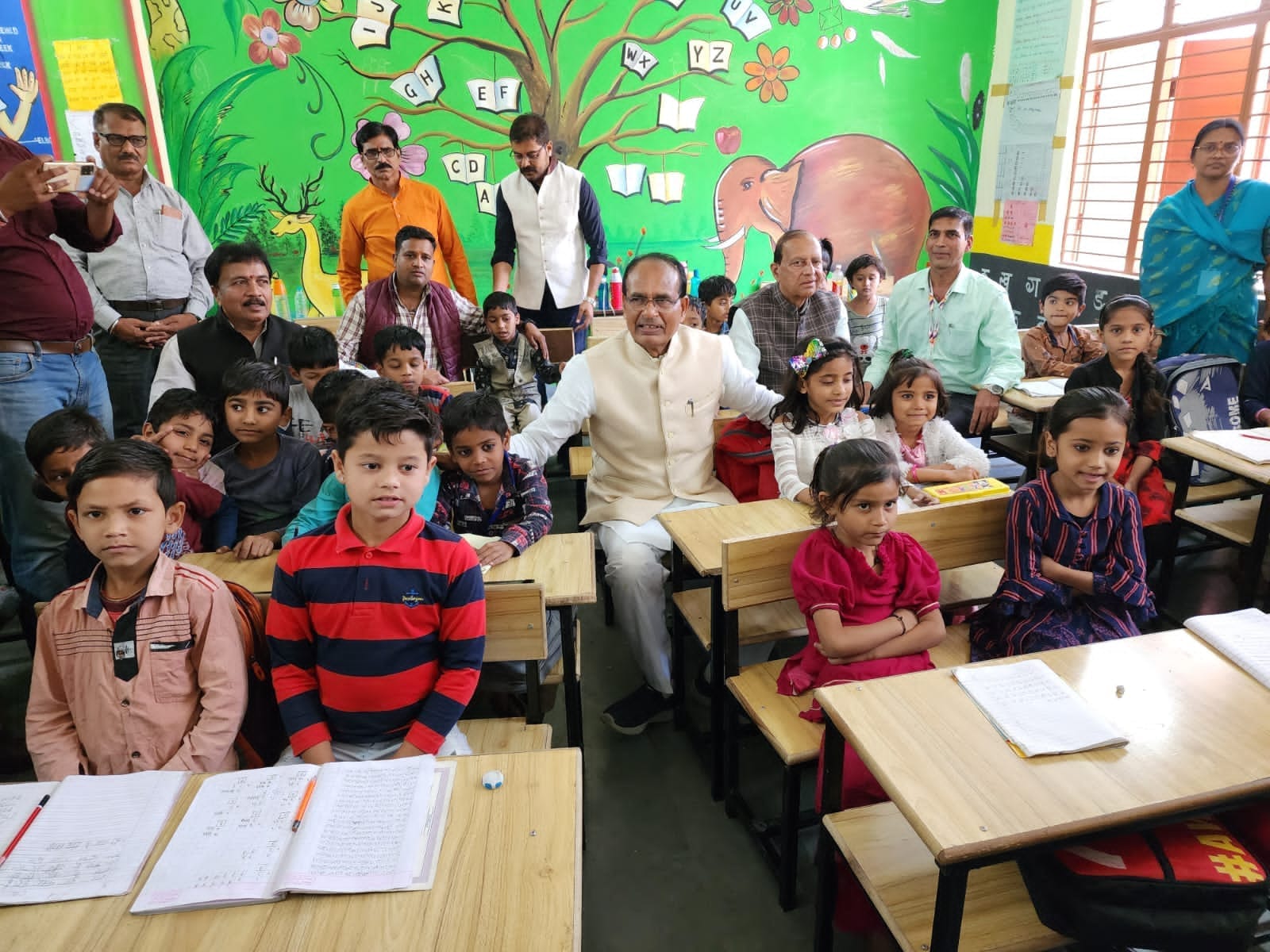 दरअसल मुख्यमंत्री शिवराज सिंह चौहान इन दिनों प्रदेश के जिलों के औचक निरीक्षण पर है। इस क्रम में मुख्यमंत्री सोमवार को सीहोर जिले के दौरे पर पहुंचे और वहां कई विकास कार्यों का जायजा लेने के बाद नसरुल्लागंज के एक सरकारी स्कूल में बच्चों से मिलने पहुंचे। स्कूलों में मुख्यमंत्री ने बच्चों के साथ उनकी पढ़ाई को लेकर खूब चर्चा की और उनको प्यार से दुलारा। मुख्यमंत्री ने क्लास में बनी पेंटिंग को लेकर भी बच्चों से सवाल जवाब किए।
