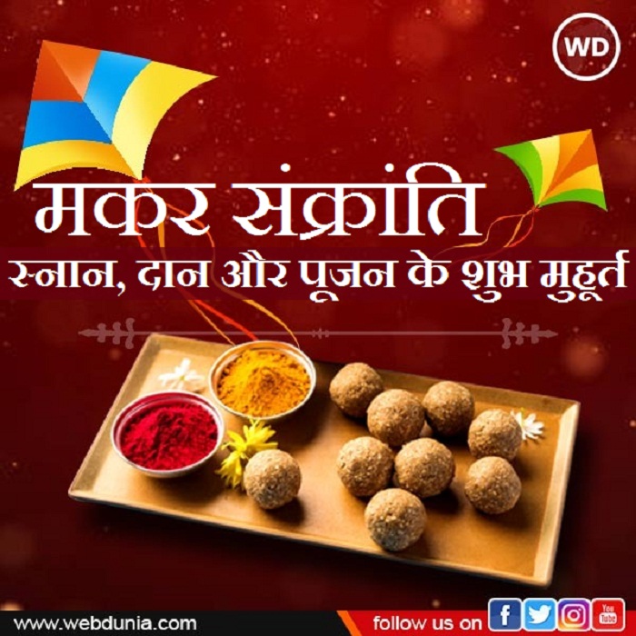 मकर संक्रांति का पुण्य काल मुहूर्त : दोपहर 02:12:26 से शाम 05:45:10 तक।
