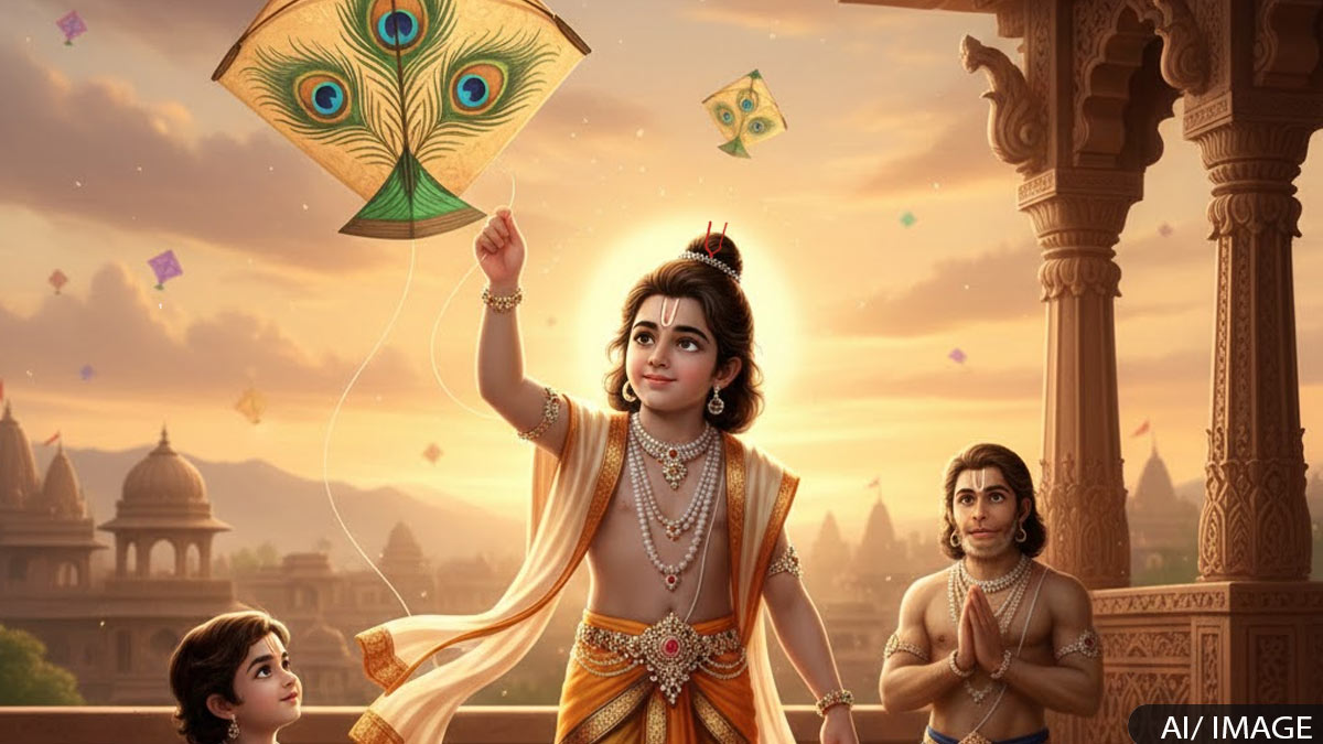जब पतंग वापस नहीं आई, तो राम जी ने हनुमान जी को उसे लाने भेजा। हनुमान जी ने वहां जाकर बताया कि यह पतंग प्रभु राम की है। तब जयंत की पत्नी ने इस शर्त पर पतंग वापस की कि वह प्रभु के दर्शन करना चाहती हैं।