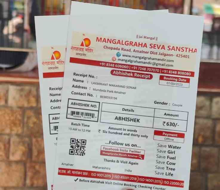 मंदिर प्रबंधन की सूचना के अनुसार महाराष्ट्र सहित पूरे भारत से श्रद्धालु अपनी आस्था के चलते यहां दर्शन और अभिषेक के लिए आते हैं। इसी के चलते मंदिर ने अब श्रद्धालुओं की सुविधा के लिए ऑनलाइन अभिषेक बुकिंग और भुगतान की सुविधा उपलब्ध कराई है। यदि भक्त अभिषेकम और दर्शन के लिए मंगलग्रह मंदिर आना चाहते हैं, तो अब अभिषेकम बुक करना और घर बैठे ऑनलाइन भुगतान करना आसान है।