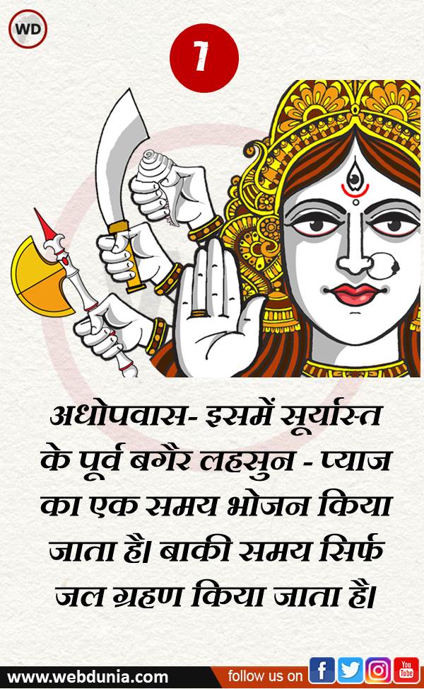 उपवास कई प्रकार के होते हैं- 1.प्रात: उपवास, 2.अधोपवास, 3.एकाहारोपवास, 4.रसोपवास, 5.फलोपवास, 6.दुग्धोपवास, 7.तक्रोपवास, 8.पूर्णोपवास, 9.साप्ताहिक उपवास, 10.लघु उपवास, 11.कठोर उपवास, 12.टूटे उपवास, 13.दीर्घ उपवास, 14.पाक्षिक व्रत 15.त्रैमासिक व्रत 16.छह मासिक व्रत और 17.वार्षिक व्रत।